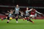 اگرچه در کل، آرسنال در محاصره بود، ولی بههیچوجه زیر فشار نبود و مصمم بازی میکرد. پاسخهای آنها هم فقط گاهی خطرناک بود که در دو مورد، طبیعتا امیل اسمیت-رو دخالت داشت. در یک مورد او در فراری عالی و روی ارسال عمقی نیکولاس پپه، ضربهای پیچدار به توپ زد که در چارچوب دروازه قرار نگرفت. سپس در نیمه دوم، همین دو نفر حرکتی تقریبا مشابه انجام دادند که توپ با فاصله کمتری از چارچوب دروازه به بیرون رفت. اسمیت-رو با دوندگی فراوانی که در سراسر زمین داشت، خسته شد و جای خود را به مارتین اودگارد داد که درخششی نداشت.