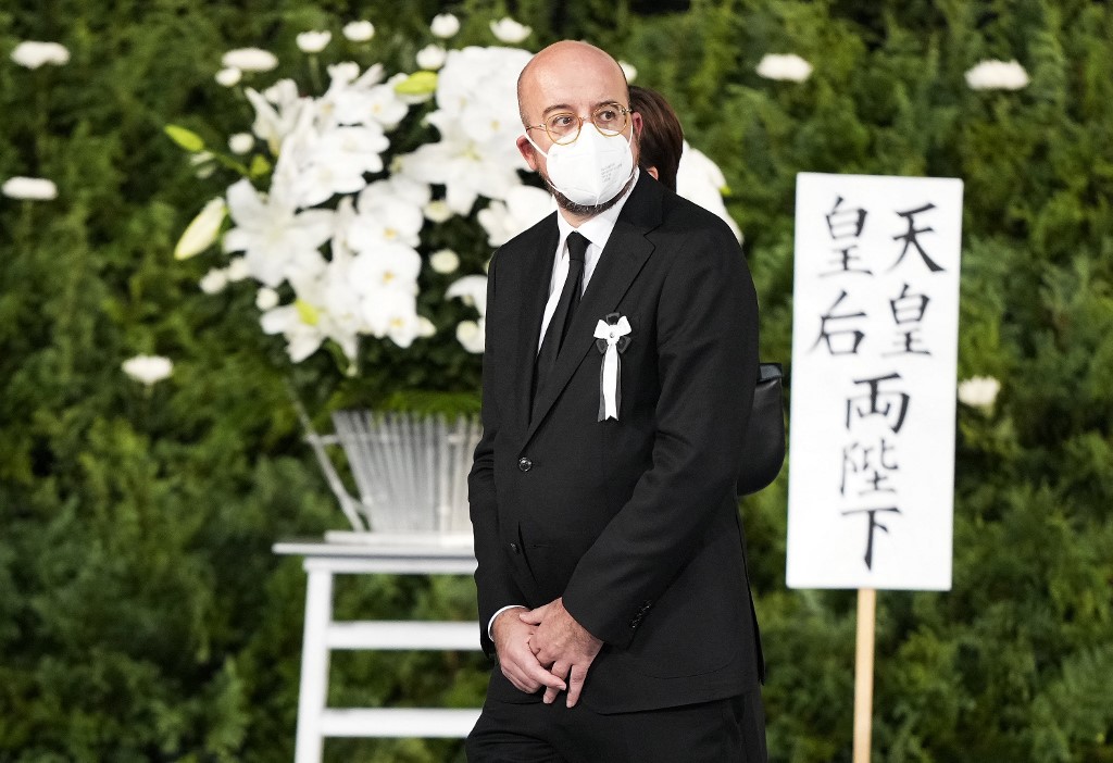 جاستین ترودو، نخستوزیر کانادا، قرار بود در مراسم خاکسپاری شرکت کند. اما با مشخص شدن میزان خسارت ناشی از طوفان فیونا، سفرش به ژاپن را لغو کرد.