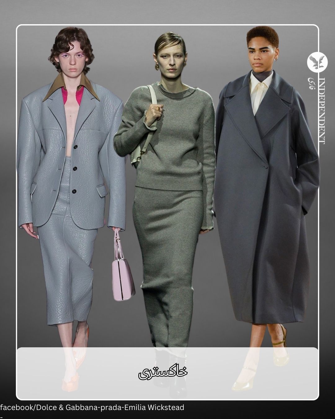 آب و هوای ابری پاییز، سبک خاکستری زیبا را میپسندد. ژاکت کشباف پشمی و دامن بافتنی مشابه از برند لوو (Loewe) مجموعهای است که به تن همه برازنده خواهد بود. گوچی نیز با ارائه کت و شلوارهای خاکستری، سبک مدیران و تاجران را شبیهسازی کرد. اما مکس مارا، امیلیا ویکستد و بوتگا ونتا به سراغ کتهای بلند و بزرگتر از سایز رفتند.