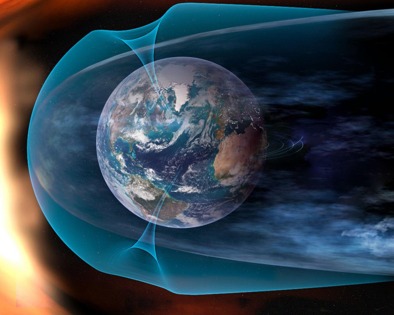 خورشید همواره ذرات باردار و میدانهای مغناطیسی خود را به صورت بادهای خورشیدی و نیز ابرهای عظیم پلاسما و تابش پرتاب میکند که هنگام برخورد با مگنتوسفر زمین میتوانند طوفانهای ژئومغناطیسی ایجاد کنند. میدان مغناطیسی زمین مانند یک سپر محافظتی در برابر این ذرات خورشیدی و تابشهای فضایی عمل میکند.