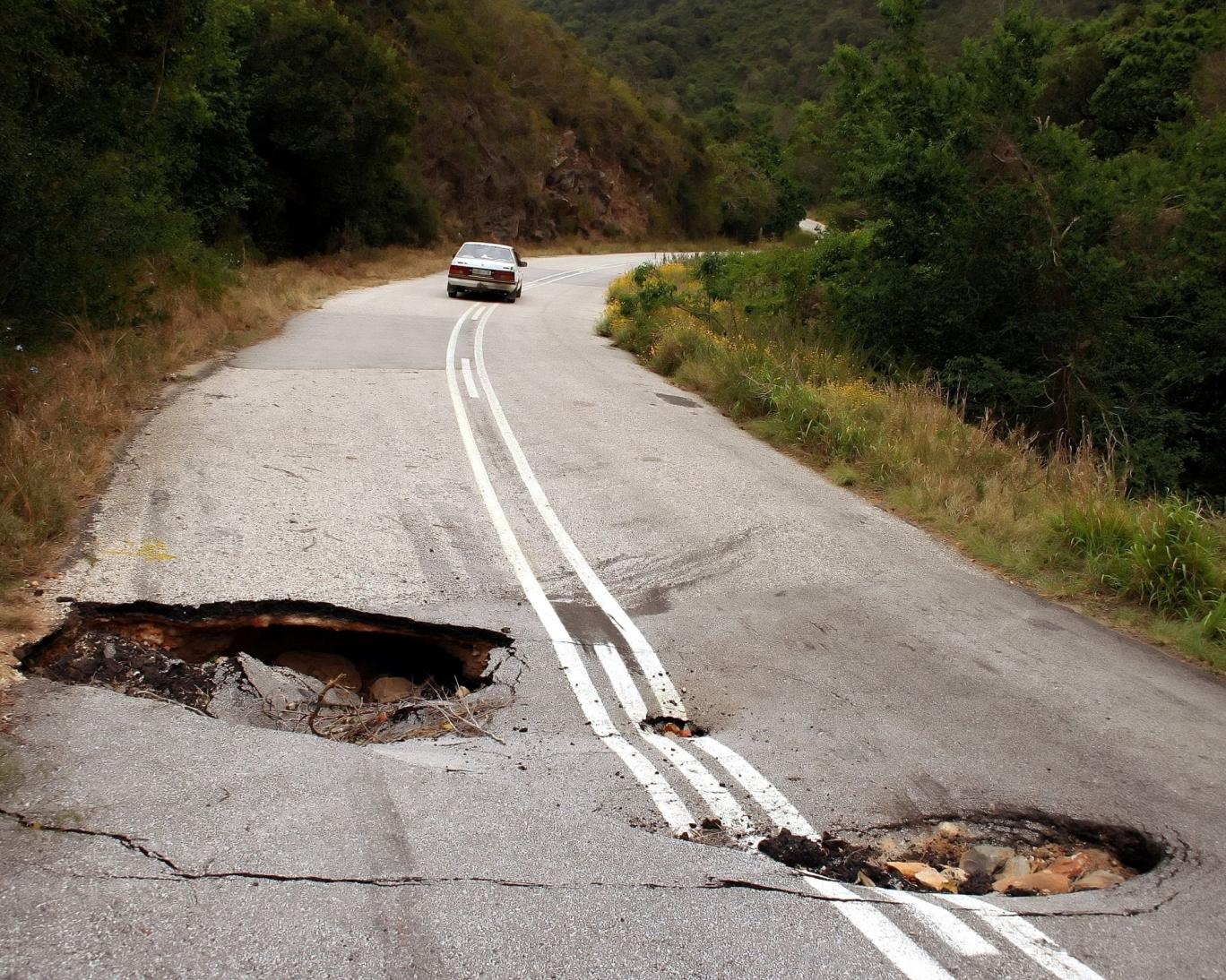 عکس تزئینی - جاده فرونشست دارد و خودرویی در آن حرکت می‌کند - Canva