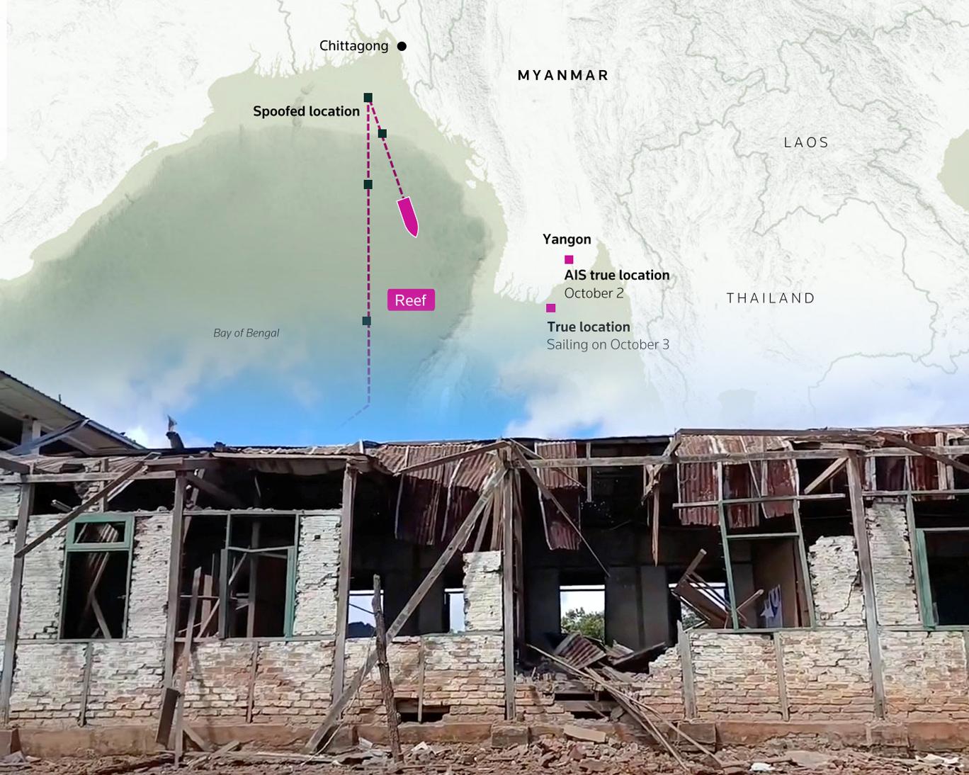 محمولههای ارسالی جمهوری اسلامی با دور زدن تحریمهای غرب علیه هر دو کشور انجام شد. این تحریمها پیشتر بسیاری از تامینکنندگان تجاری سوخت را وادار کرده بود بازار میانمار را ترک کنند. کشتیهای ریف و نوبل که آمریکا در سال ۲۰۲۴ تحریم کرده است، مسیر حدود ۵۵۰۰ کیلومتری میان ایران و میانمار را بارها طی کردند و برای پنهانسازی مبدا واقعی، از تکنیک «جعل موقعیت» استفاده کردند.
