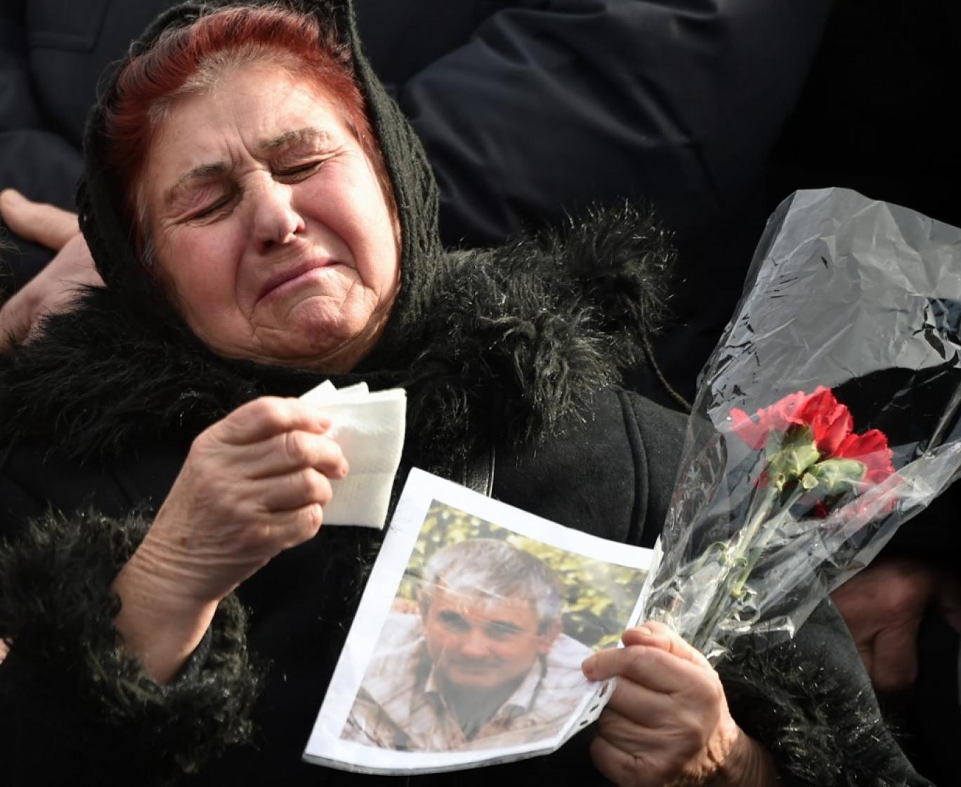 خویشاوندان ۱۱ اوکراینی‌ای که در شلیک به این هواپیما کشته شدند در این مراسم حضور داشتتند- SERGEI SUPINSKY / AFP