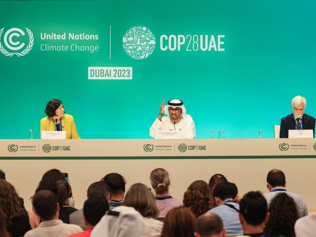 جهان کنفرانس کاپ ۲۸؛ بانکهای امارات متحده عربی ۲۷۰ میلیارد دلار برای «تامین مالی سبز» متعهد شدند سلطان احمد الجابر، رئیس این دوره اجلاس تغییرات اقلیمی سازمان ملل، تاکید کرد که بحران آب و هوا نیازمند تامین مالی و راهحلهای فوری است آغاز بهکار کاپ ۲۸، نشست جهانی آبوهوایی سازمان ملل در دبی کنفرانس کاپ۲۸؛ آلمان از تاسیس باشگاه بینالمللی برای کمک به کربنزدایی خبر داد کنفرانس کاپ ۲۸؛ ایالات متحده سه میلیارد دلار به صندوق «آبوهوای سبز» اختصاص میدهد
