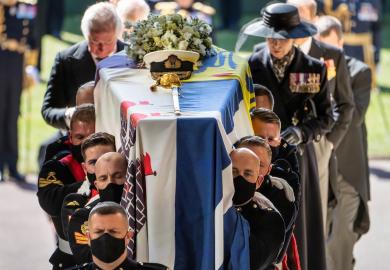 تابوت همسر ملکه بریتانیا از کلیسای سنت جرج حمل شد و پرنس چارلز، ولیعهد بریتانیا، و سه فرزند دیگر شاهزاده فیلیپ به دنبال آن حرکت کردند