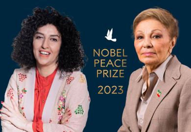فرزندان نرگس محمدی در مراسم اهدای جایزه در تالار شهر اسلو شرکت کردند و جایزه یک میلیون دلاری، مدال طلا و گواهینامه را به نمایندگی از مادرشان دریافت کردند