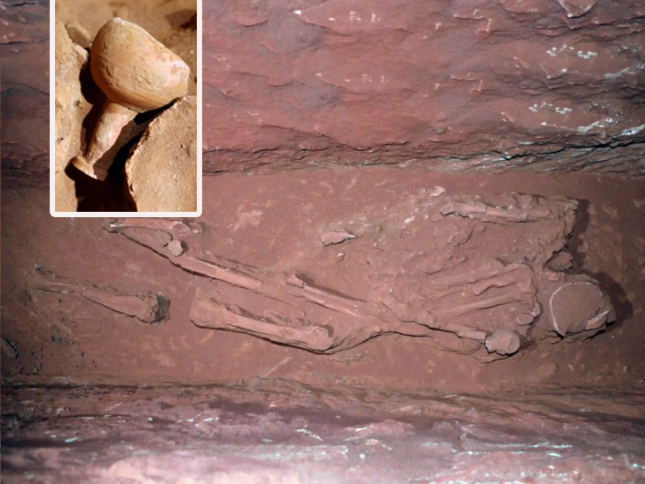 در این مقبره باستانی ظرفی سفالی در دست یکی از اسکلتها یافت شد که شبیه همان جام مقدسی است که در فیلم «ایندیانا جونز و آخرین جنگ صلیبی» در سال ۱۹۸۹ نشان داده شد